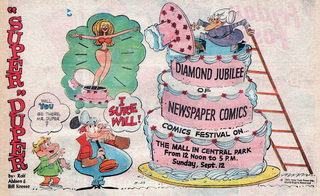 And let it be known that Bill Gallo turned his Basement Bertha sports character into a rarely run Sunday comics feature Bertha between 1972 and 1979.....