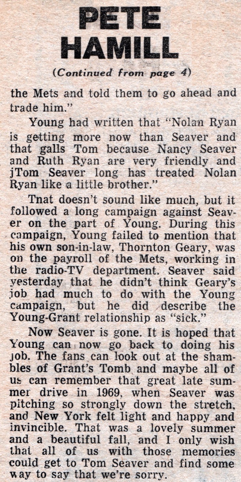 Tales From the New York Daily News : Happy 50th Anniversary to the 1969 Miracle Mets!!!