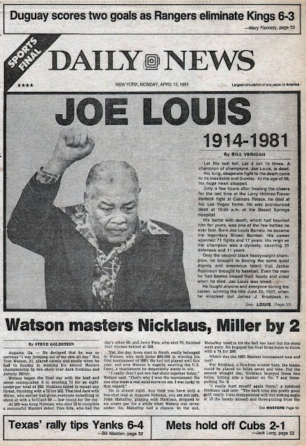 The final part of my tribute here will be images and/or articles taken from my vast collection of THE NEW YORK DAILY NEWS original newspapers. It's for this reason my grandfather once referred to me as "the third Collyer brother." It's not an all-time greatest collection of the greatest front pages or back pages, it's a collection of my favorites, papers I personally own. That said, sports will slant heavily to the New York Mets and covers that suit my particular interests. Hope you enjoy the trip down memory lane.....